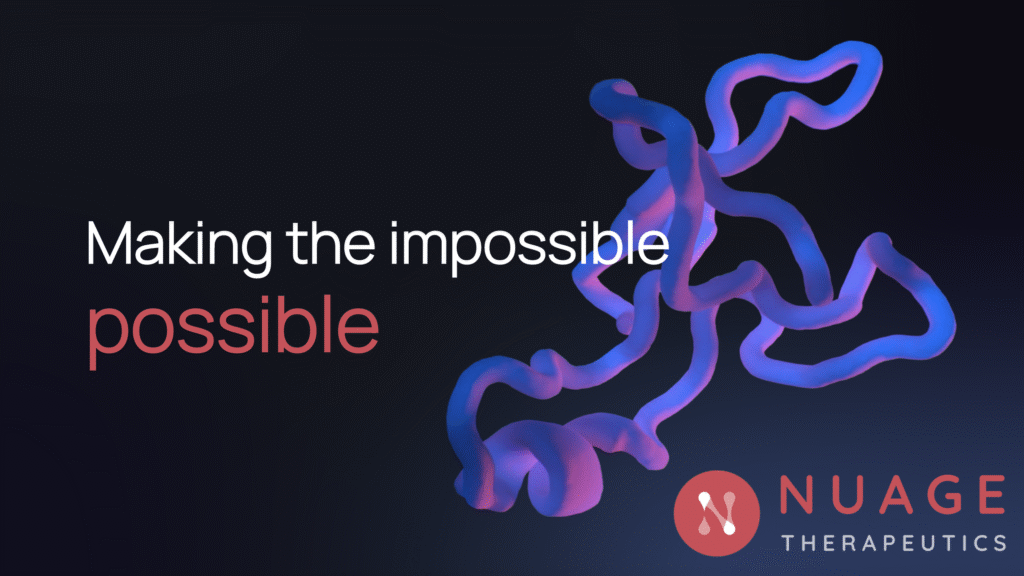 Nuage Therapeutics has developed an innovative technology that enables interrogating intrinsically disordered proteins (IDPs) in their transient more ordered structures, in which they are susceptible to being recognized and inhibited by drugs. This strategy opens up a new avenue for designing therapies against proteins that, until now, were considered undruggable.